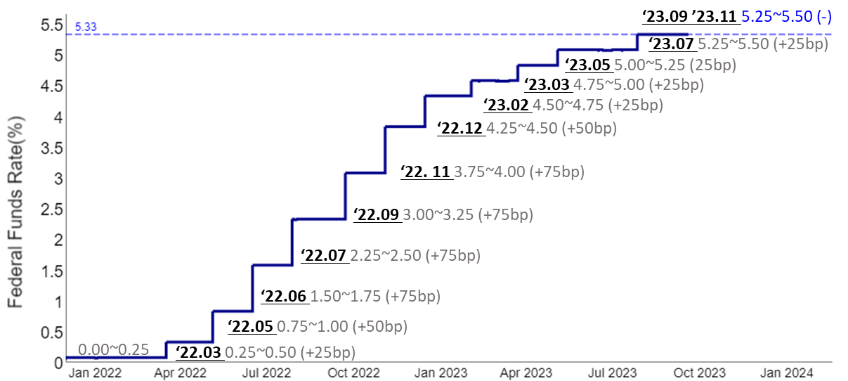 - '23년 7월 : 5.00~5.25% → 5.25~5.50%